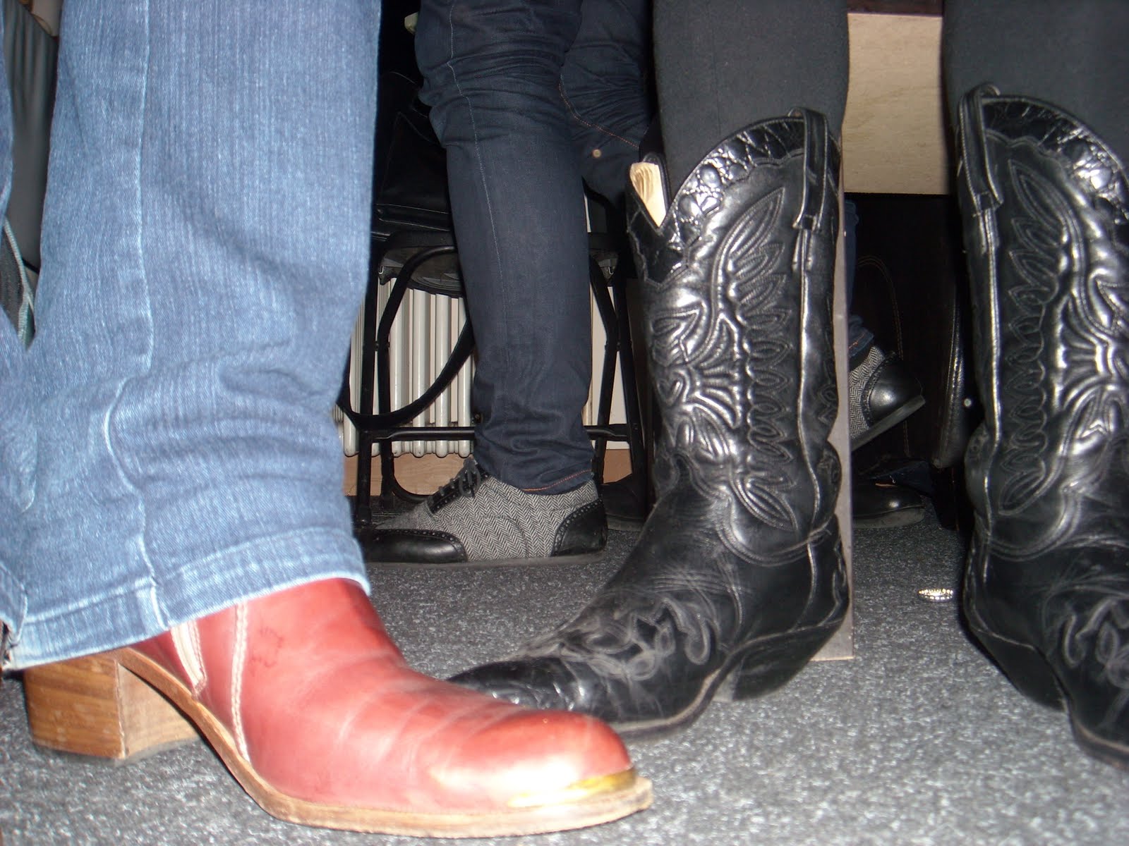 I had a mission: find perfect boots for stage outfit. After being in Kreuzberg for less than two hours we had had the ‘world’s best’ Thai food and I was the owner of black boots with crazy heels…Later Niko (who did the whole trip with zero budget) found these male-high heels and convinced Jukka to lend the cash. (The shoe behind is Jukka’s jealous bookie boot – he crashed the picture)